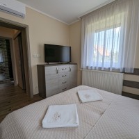 Az apartmanban található televízió, kerámialapos tűzhely sütővel, minihűtő. A fürdőszoba zuhanyzós, valamint törölköző és hajszárító is található. A konyha teljesen felszerelt: mikrohullámúsütő, vízforraló, megfelelő edény és evőeszközkészlet áll a kedves vendégek rendelkezésére.